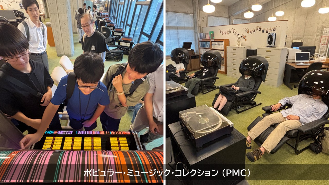 続いて、PMC(ポピュラー・ミュージック・コレクション)では、25万枚以上のアナログレコードに囲まれながら、ボディ・ソニック(体感音響装置)による音楽体験を通じて、音楽と技術の融合を楽しみました。