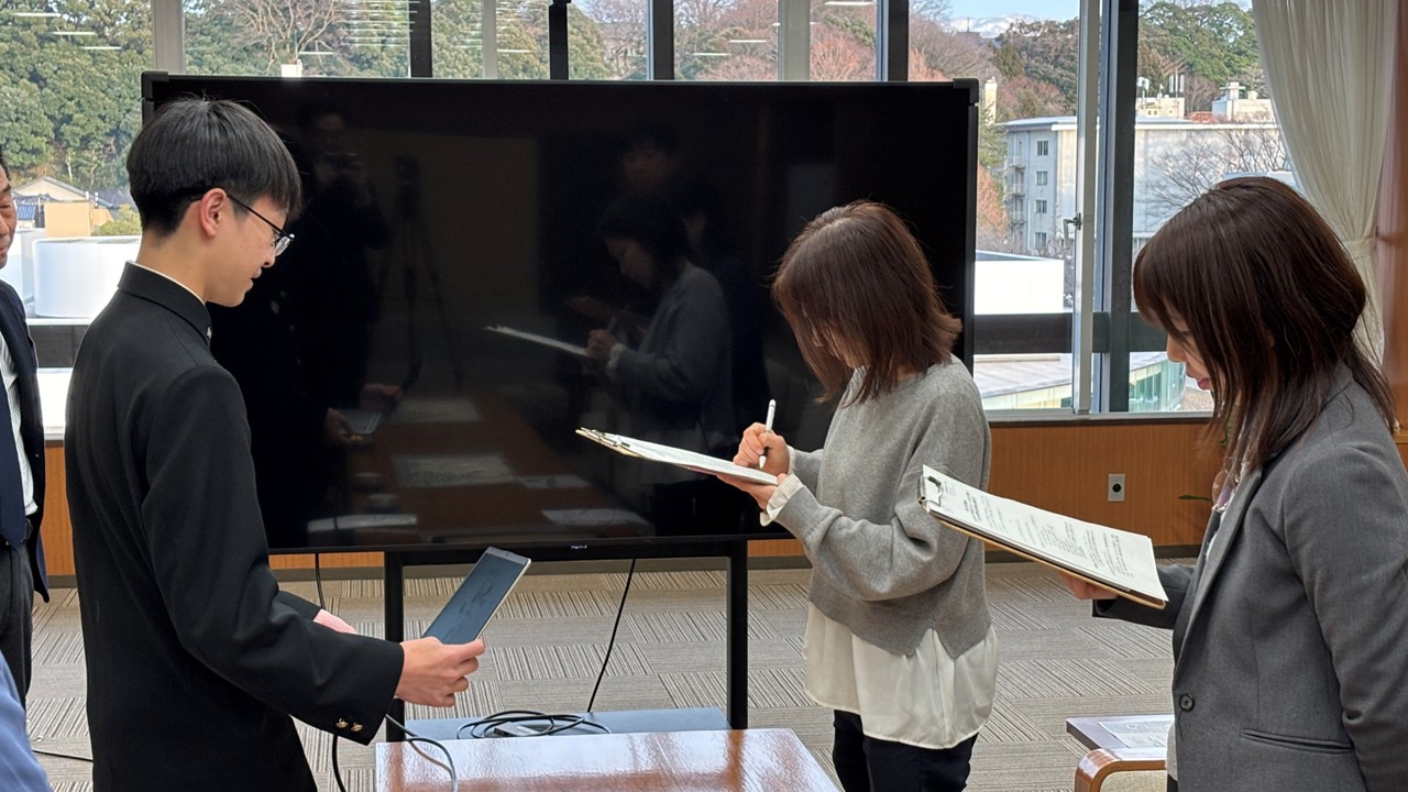 卒部生)佐村木康太さん「文部科学大臣賞受賞」の報告で金沢市表敬訪問