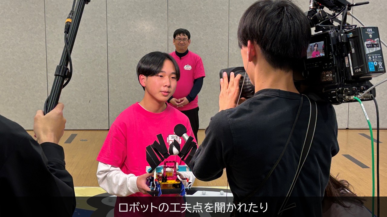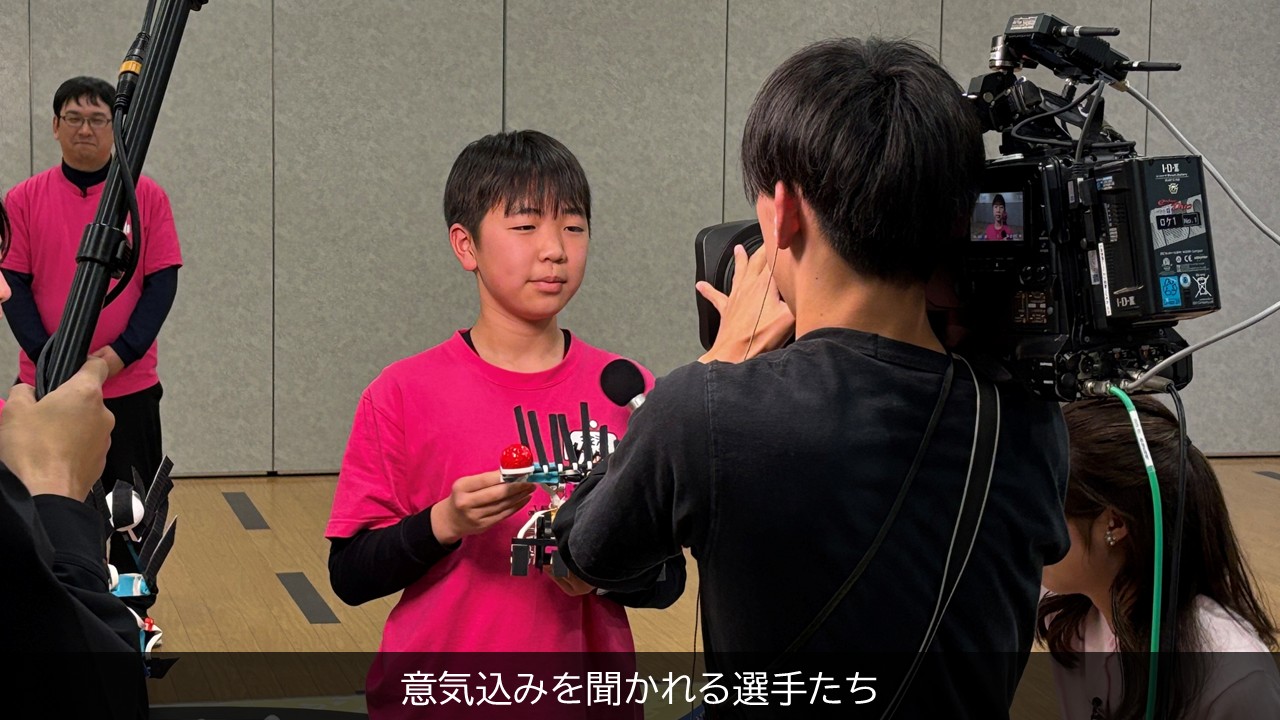 ロボットの工夫点や意気込みを聞かれる選手たち。